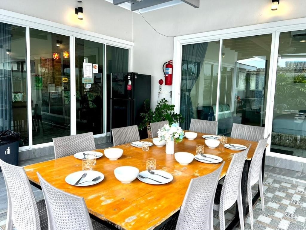 Vores familie i Thailand har et ferie-hus som udlejes på dags/uge basis i Bang Saray ( บางเสร่), kun 2 timer fra Suvarnabhumi Airport (BKK) og ½ time syd for Jomtien/Pattaya.